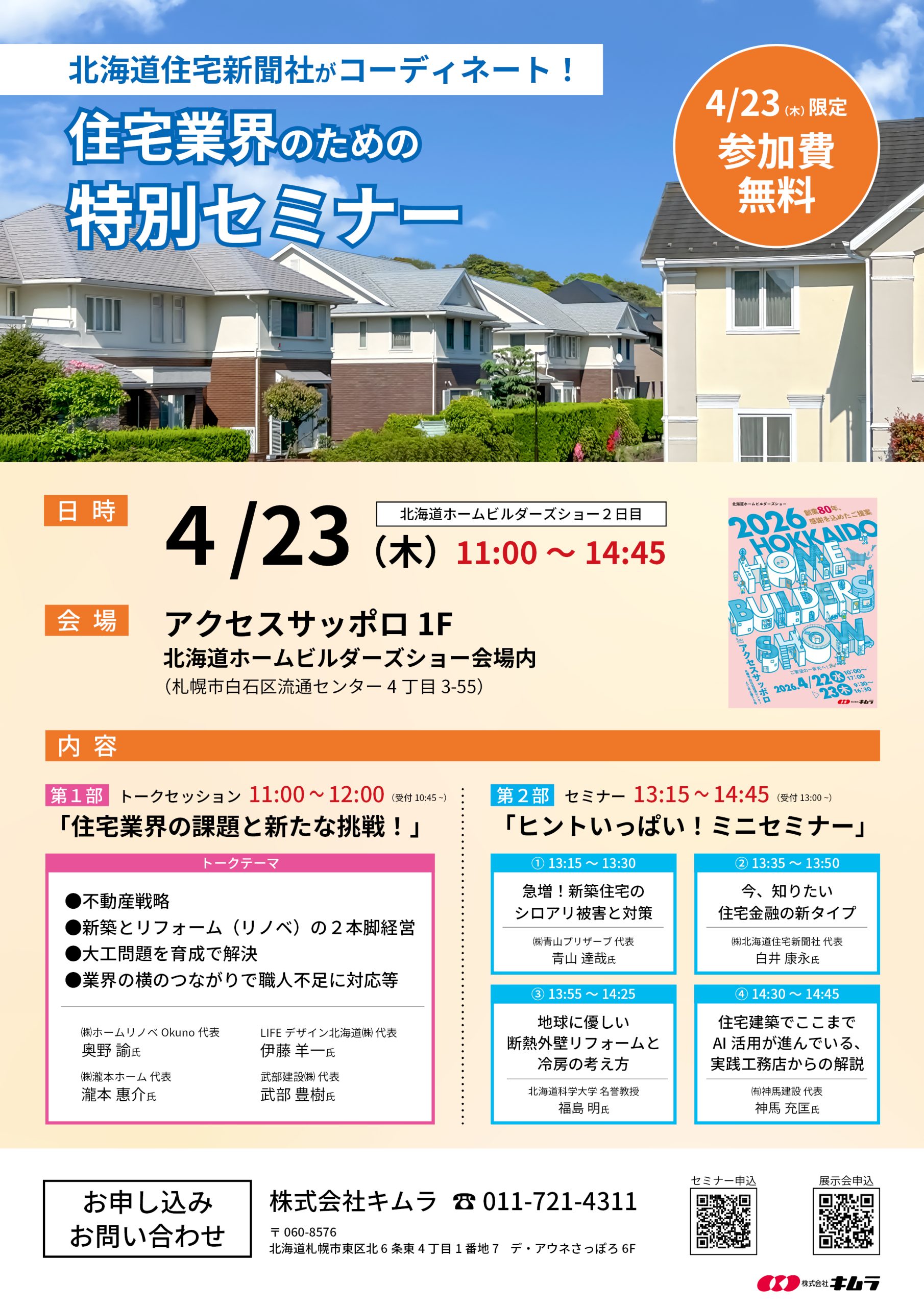 4月23日(木)「住宅業界のための特別セミナー」開催のお知らせ|2026北海道ホームビルダーズショー